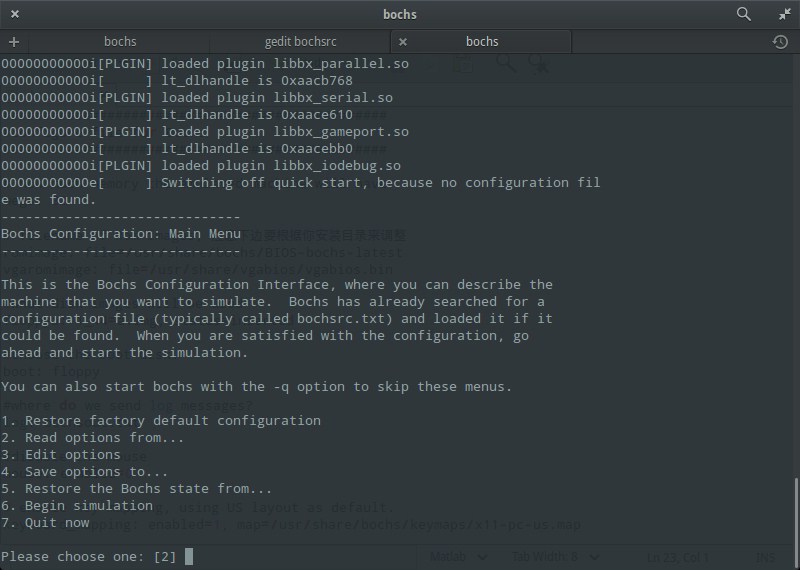 安装结束后,运行命令 bochs 出现下图说明安装成功: