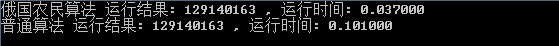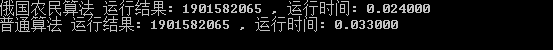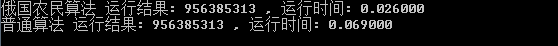俄国农民指数算法和普通算法求幂运行时间比较: