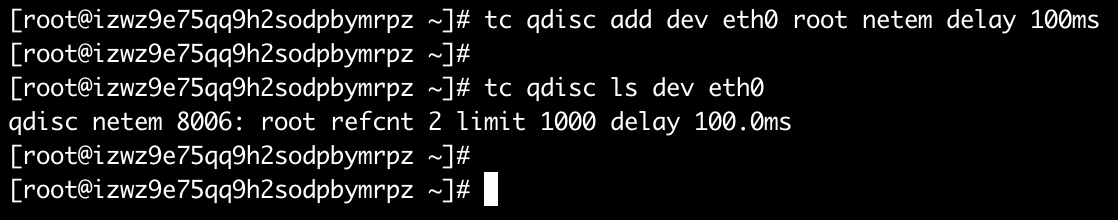 tc qdisc add dev eth0 root netem delay 200ms