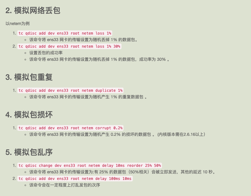 在实际工作中,有些对网络质量高敏感型的场景,服务上线前需要进行弱网环境下的测试,这个时候可以使用 tc 流控工具进行模拟弱网情况,tc工具主要有两大部分功能: (1). 配合netem工具,模拟网络延迟,丢包,包重复,包损坏,包乱序; (2). 做流量控制,限制网卡传输速率在指定值以下,对数据包按照源IP或者其它策略分配带宽。