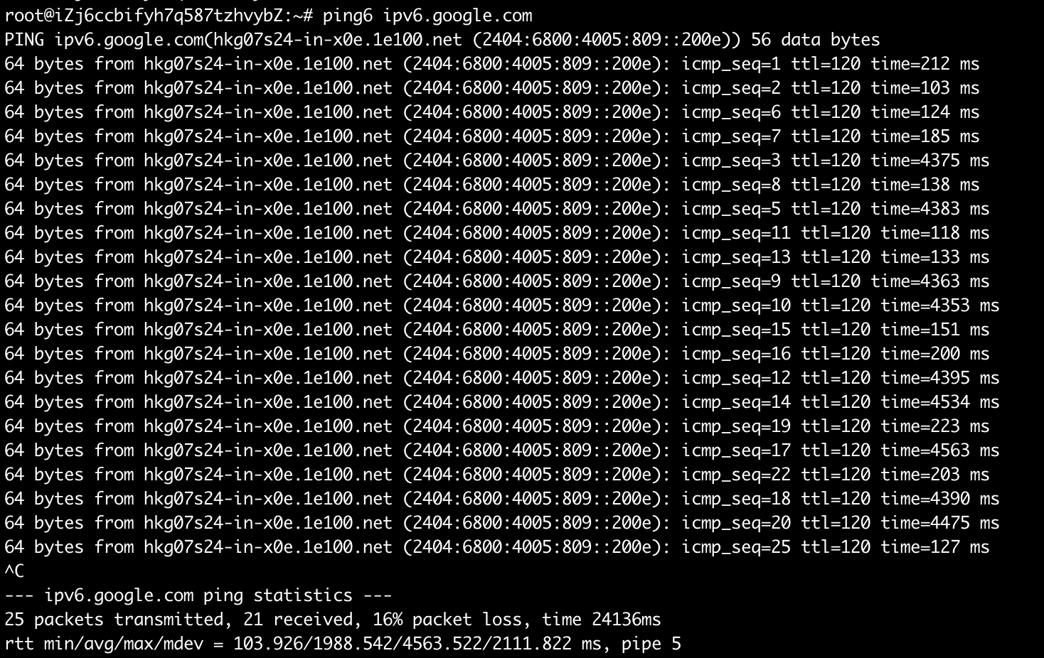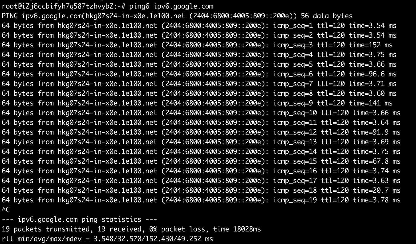 上述命令对于 IPv6 同样适用,演示如下,执行命令之前: