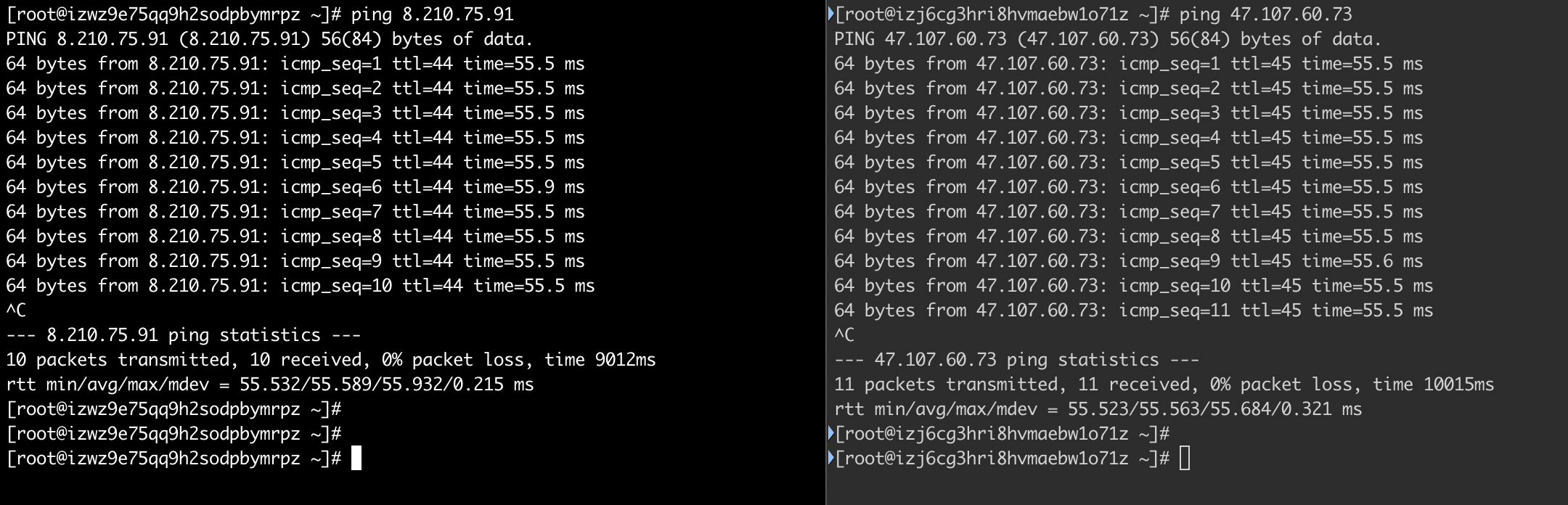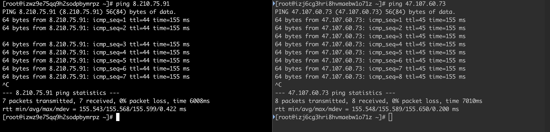 两台机器互相 Ping: