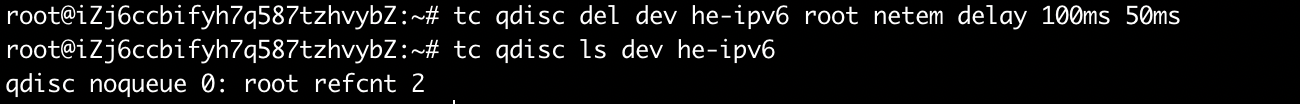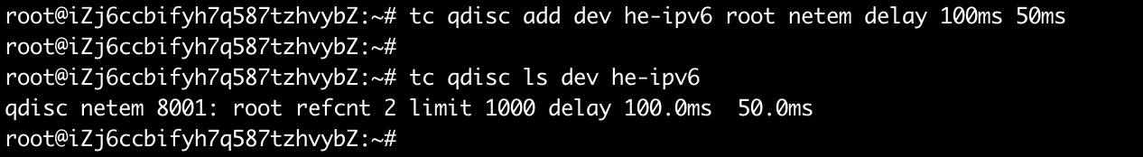 tc qdisc add dev he-ipv6 root netem delay 100ms 50ms